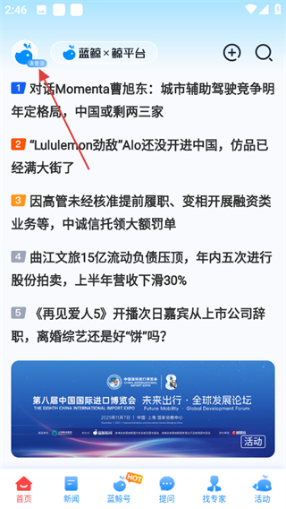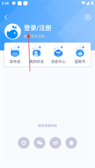 1、進入藍鯨財經(jīng),在首頁點擊左上角請登錄,進入登錄相關頁面。