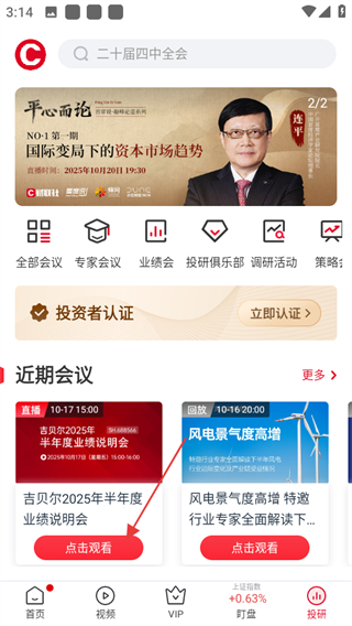 2、在投研頁(yè)面,找到吉貝爾說(shuō)明會(huì),點(diǎn)擊點(diǎn)擊觀看進(jìn)入詳情頁(yè)面。