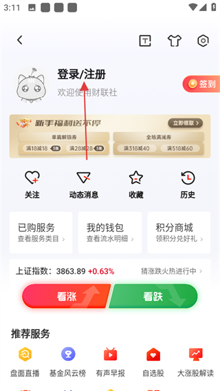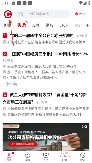 1、進(jìn)入財聯(lián)社,在首頁點擊左上角圖標(biāo),進(jìn)入個人相關(guān)頁面。