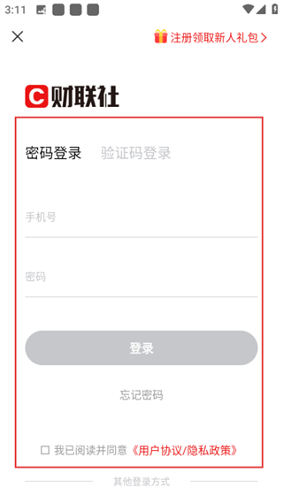 3、在登錄選擇頁面,輸入信息,同意協(xié)議后,點擊登錄即可完成登錄。