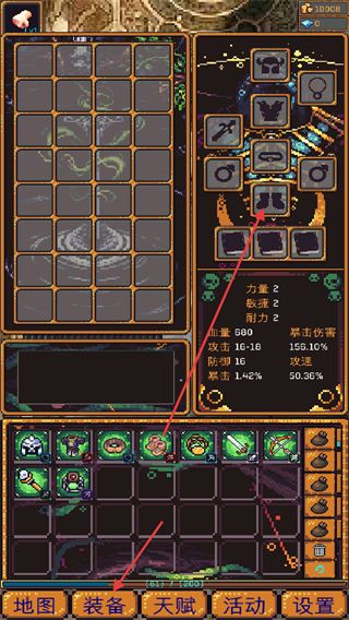 3、點(diǎn)擊裝備按鈕查看并調(diào)整武器防具等裝備搭配。