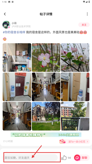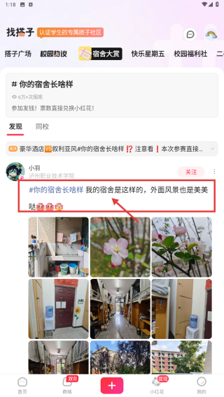 3、在宿舍大賞板塊中,選擇感興趣的帖子,例如你的宿舍長啥樣我的宿舍是這樣的,外面風(fēng)景也是美美噠,點(diǎn)擊進(jìn)入帖子詳情頁面。