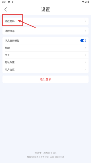 3、在設(shè)置界面,點(diǎn)擊修改密碼選項(xiàng),進(jìn)入修改密碼頁(yè)面。