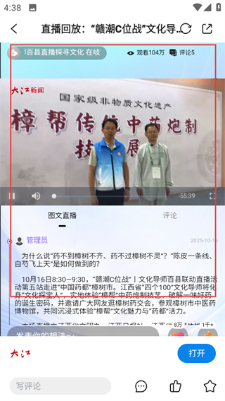 4、在直播視頻播放頁面,觀看直播內(nèi)容,還能了解相關(guān)文化信息。