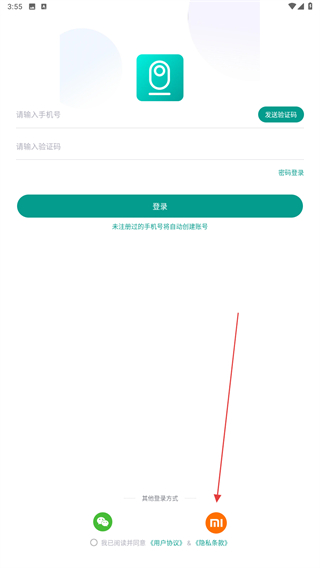 1、打開(kāi)小蟻智能攝像機(jī)的APP,進(jìn)入時(shí)點(diǎn)擊下方小米的圖標(biāo)。