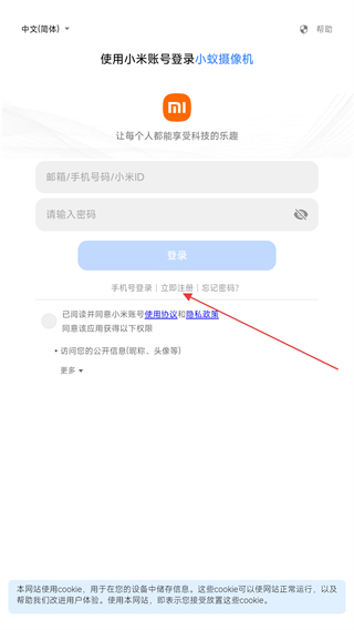 2、進(jìn)入小米登錄的頁(yè)面內(nèi),點(diǎn)擊立即注冊(cè)的按鈕。