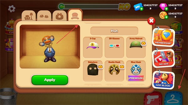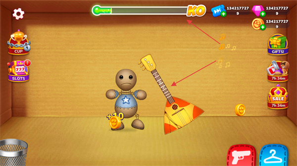 1、使用道具擊飛木偶人,增長KO進(jìn)度條。