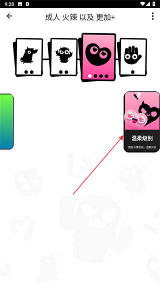 1、選擇成人火辣以及更加+模式中的粉色卡牌,進(jìn)入溫柔級(jí)別游戲環(huán)節(jié)。