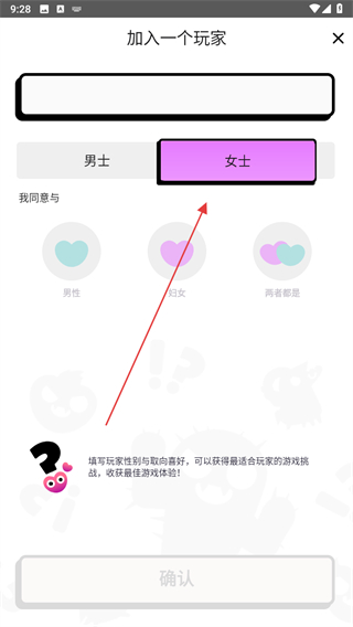 2、在加入一個(gè)玩家界面,選擇性別如女士,填寫(xiě)信息后加入玩家列表。