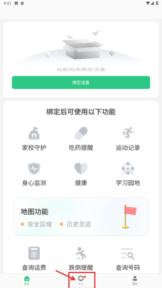 1、打開(kāi)安全守護(hù)2手表應(yīng)用,點(diǎn)擊底部的少兒選項(xiàng)。