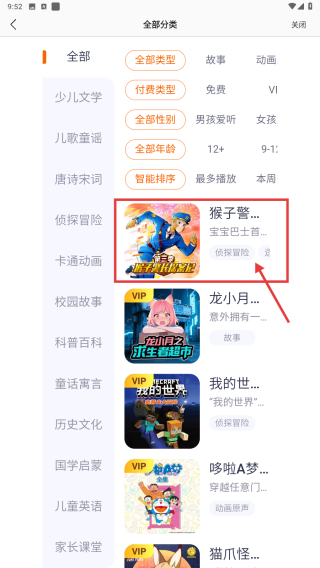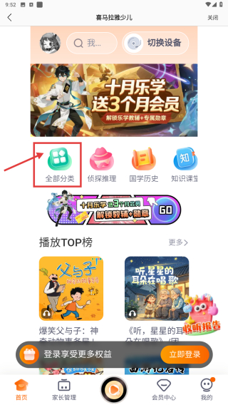 2、在少兒頁(yè)面,點(diǎn)擊全部分類(lèi)選項(xiàng),查看分類(lèi)。