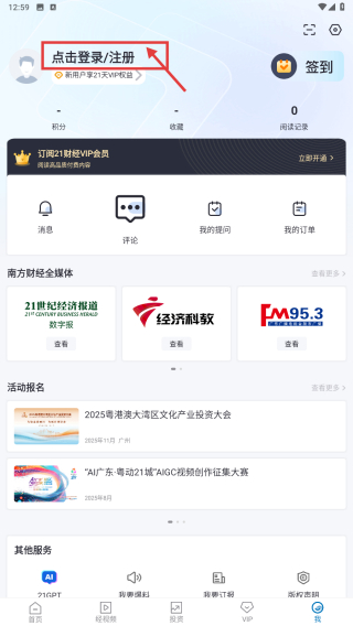 1、打開21財(cái)經(jīng)應(yīng)用,點(diǎn)擊底部我選項(xiàng),進(jìn)入個(gè)人中心頁面。