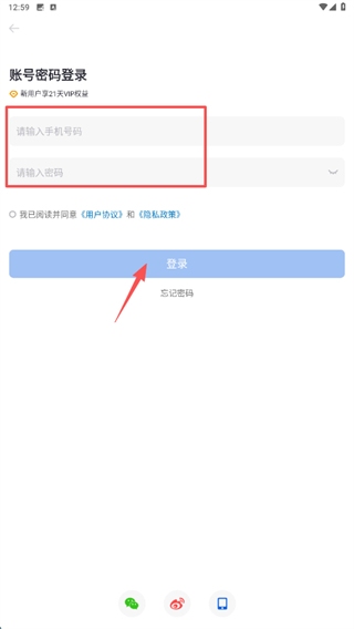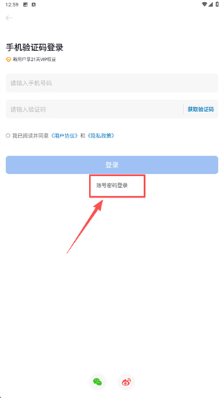 3、在登錄頁面當(dāng)中點(diǎn)擊賬號(hào)密碼登錄。