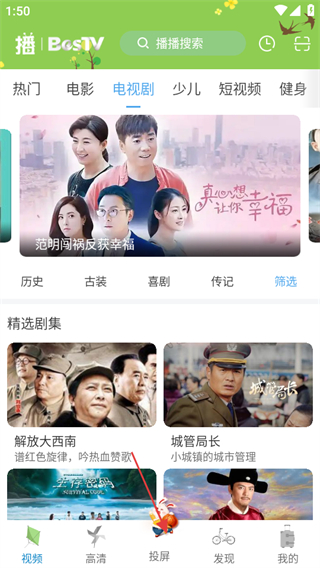 1、打開播播TV,在頁面底部點(diǎn)擊投屏,進(jìn)入投屏操作頁面。
