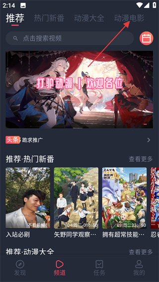 2、在動漫電影板塊,點擊查看更多可瀏覽更多動漫電影內(nèi)容。