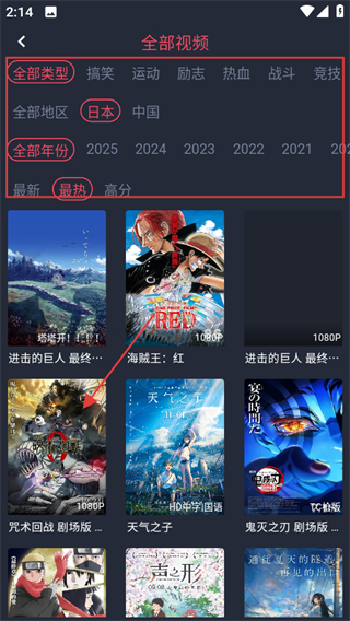 3、在全部視頻頁面,篩選條件等找到心儀動漫電影,如咒術(shù)回戰(zhàn)劇場版。