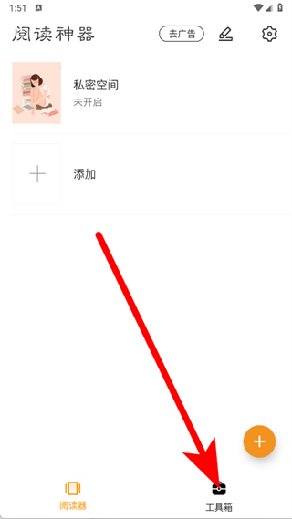 1、打開閱讀神器,點擊頁面底部的工具箱。
