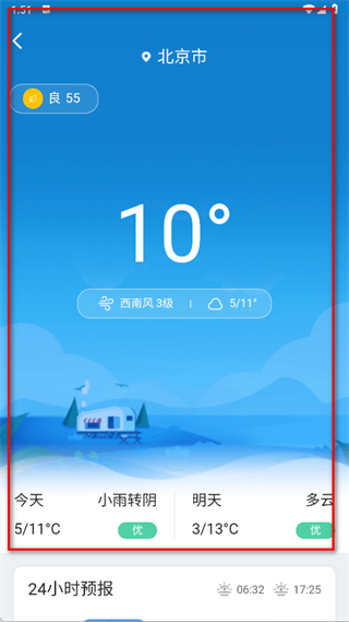 3、進(jìn)入天氣預(yù)報頁面后,查看當(dāng)前城市的實時溫度等信息。