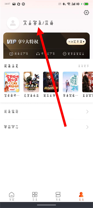 2、在我的頁面,點(diǎn)擊點(diǎn)擊登錄注冊(cè)選項(xiàng),進(jìn)入登錄界面。