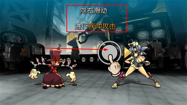 1、向右滑動(dòng)屏幕,角色會(huì)進(jìn)行疾沖攻擊,可快速接近敵人并造成傷害,是重要的進(jìn)攻手段。