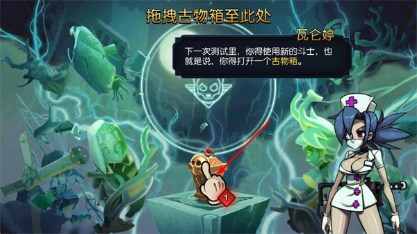 4、按照提示,將古物箱拖拽至指定位置,開(kāi)啟后可解鎖新的格斗斗士,豐富自己的格斗陣容。