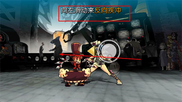 2、向左滑動(dòng)屏幕,可讓角色進(jìn)行反向疾沖,用于躲避敵人攻擊或調(diào)整戰(zhàn)斗位置。