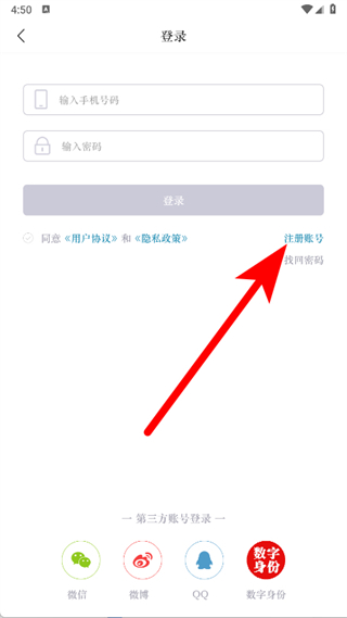 3、進(jìn)入登錄頁面后,點(diǎn)擊注冊賬號,進(jìn)入注冊頁面。