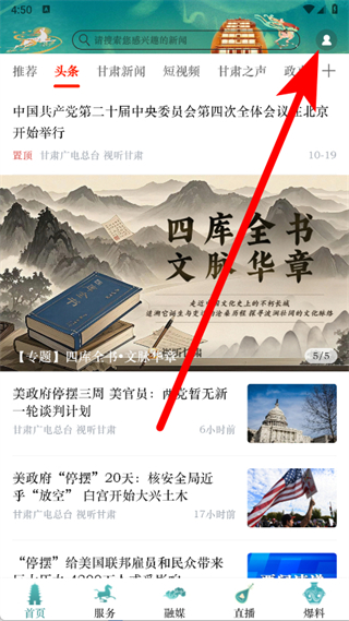 1、打開視聽甘肅,點(diǎn)擊右上角個人圖標(biāo),進(jìn)入個人頁面。