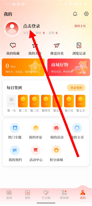 2、在個(gè)人頁面中,點(diǎn)擊點(diǎn)擊登錄區(qū)域,進(jìn)入登錄頁面。