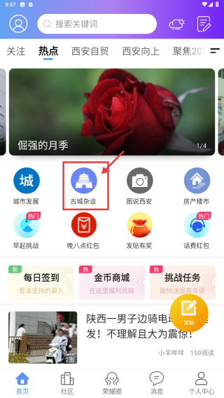 1、打開本地資訊應(yīng)用,在首頁點(diǎn)擊古城雜談分類,進(jìn)入古城雜談內(nèi)容頁面。