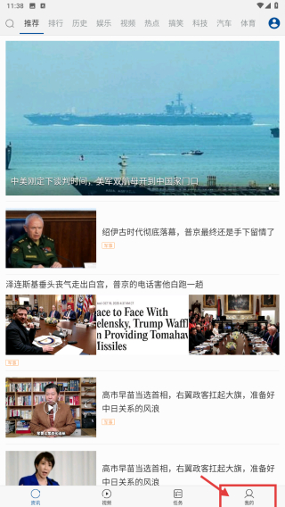 1、打開資訊類應(yīng)用,點(diǎn)擊底部我的選項,進(jìn)入個人中心頁面。