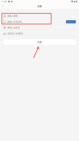 4、在注冊頁面,輸入昵稱、手機(jī)號碼、驗證碼并設(shè)置密碼后,點(diǎn)擊注冊按鈕,完成賬號注冊操作。