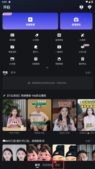 1、打開視頻創(chuàng)作應(yīng)用,點(diǎn)擊底部我的選項(xiàng),進(jìn)入個(gè)人中心頁(yè)面。