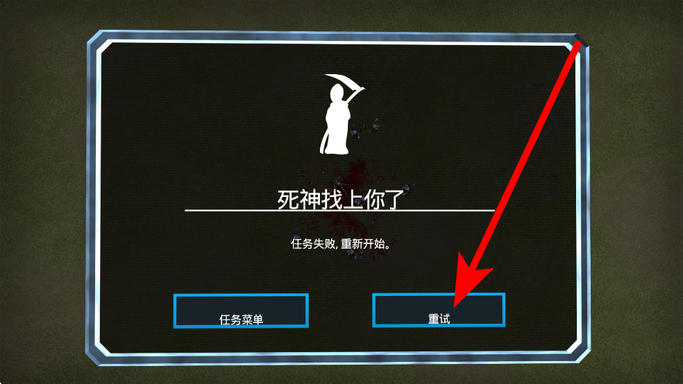 4、若任務(wù)失敗會(huì)出現(xiàn)死神找上你的提示,此時(shí)可選擇重試重新開始當(dāng)前關(guān)卡,繼續(xù)挑戰(zhàn)怪物群。