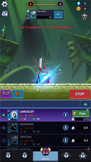 1、點擊屏幕操控英雄攻擊敵人,開啟戰(zhàn)斗冒險之旅,積累戰(zhàn)斗成果。