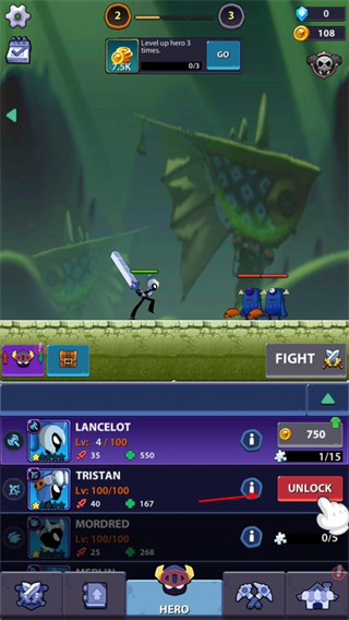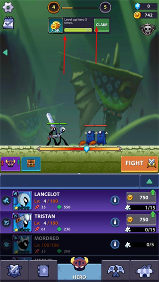 4、領取英雄升級收益,提升英雄等級,增強戰(zhàn)斗能力,推進關卡進程。