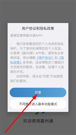 1、在用戶協(xié)議和隱私政策彈窗中,點擊同意,進入首頁。