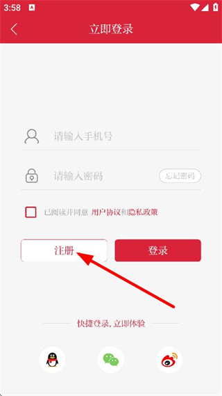 3、在立即登錄頁面,點擊選擇的注冊,進(jìn)入用戶注冊頁面。