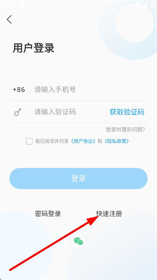 3、在用戶登錄頁面,點(diǎn)擊快速注冊(cè),進(jìn)入用戶注冊(cè)頁面。