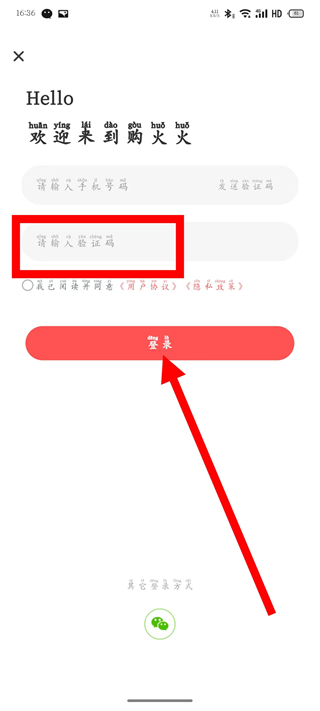 4、輸入收到的驗證碼,勾選同意后,點擊登錄按鈕,完成賬號登錄。
