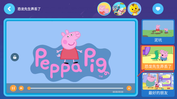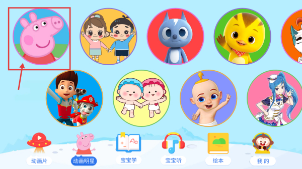 2、在動畫明星選擇頁面,點擊小豬佩奇圖標,進入其動畫列表頁面。