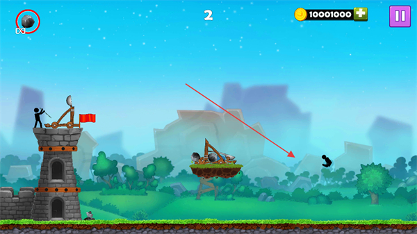 火柴人投石車MOD作弊菜單是一款以火柴人為題材的策略對戰(zhàn)作品,玩家需在防御敵人進攻的同時,操控投石機將對方擊落到平臺下方,成功擊落敵人后可獲取硬幣,硬幣可用于購買升級道具,包括炸彈、護盾、鎧甲以及投石機本身的強化,雙方各控制一名火柴人,初始擁有相同數(shù)量的生命,對戰(zhàn)過程中還會隨機出現(xiàn)烏鴉,擊中烏鴉能獲得特殊投擲物。