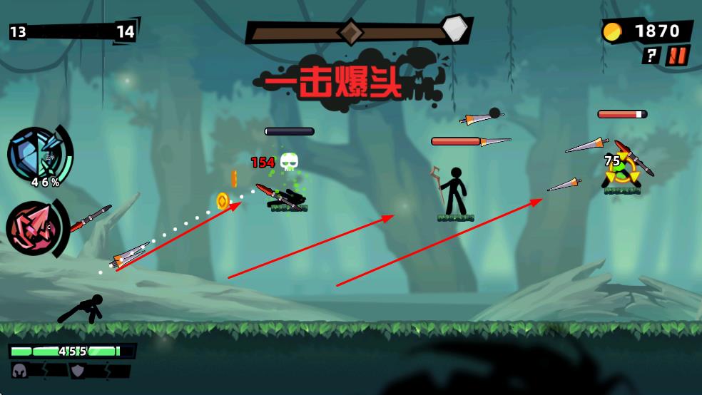 1、操控火柴人攻擊敵人,達(dá)成一擊爆頭等戰(zhàn)斗成就,收集金幣資源。