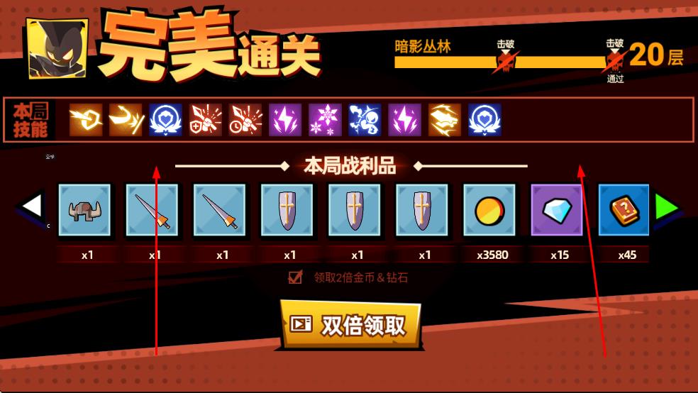 4、通關(guān)后,獲得大量金幣、鉆石、裝備等戰(zhàn)利品,解鎖新技能,挑戰(zhàn)更高層數(shù)關(guān)卡。
