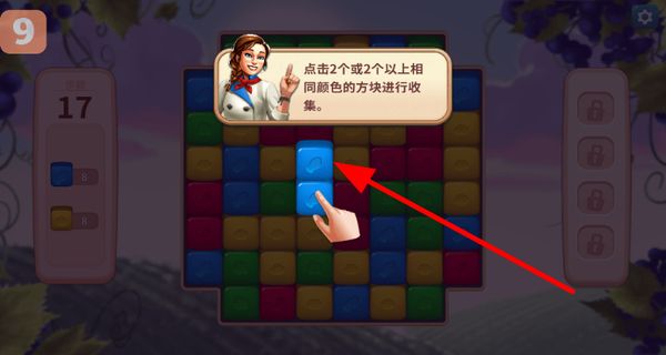 1、點擊2個或2個以上相同顏色的方塊進(jìn)行收集,通過消除方塊獲取分?jǐn)?shù),推進(jìn)關(guān)卡進(jìn)程。