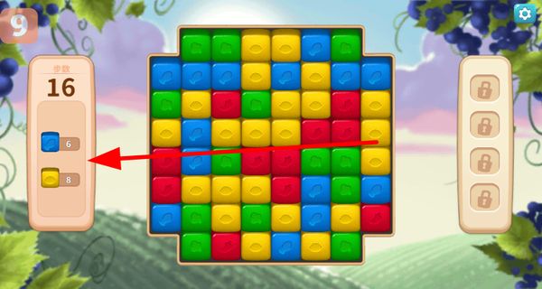 2、消除方塊過程中,關(guān)注左側(cè)的方塊收集目標(biāo),按要求收集指定顏色和數(shù)量的方塊,完成關(guān)卡任務(wù)。