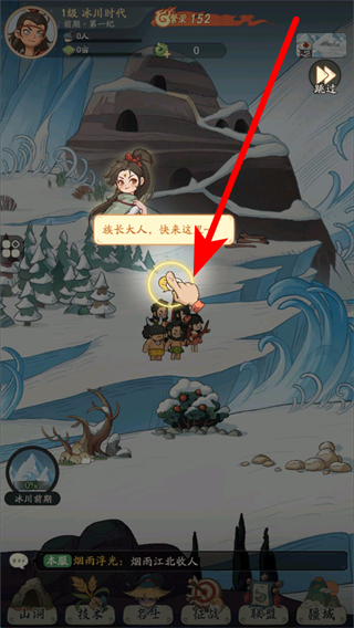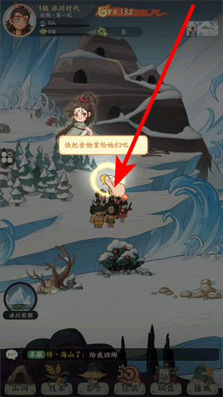 1、游戲初期會(huì)有指引,如點(diǎn)擊族長大人快來這里,這是維系文明發(fā)展的基礎(chǔ),確保族人能正常生存繁衍。