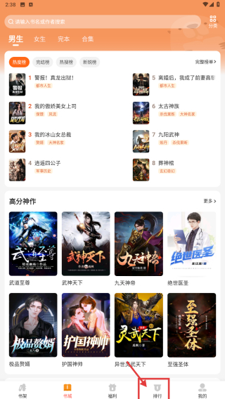 1、打開小說類應(yīng)用,點擊底部排行選項,進入排行頁面。