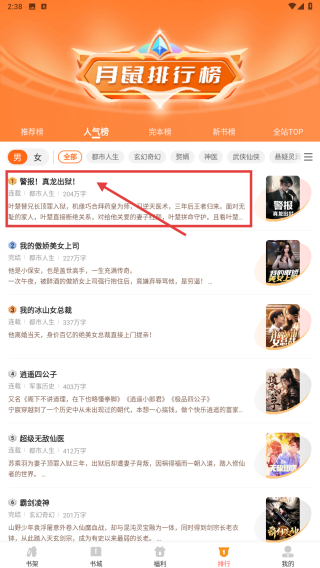 3、在人氣榜小說列表里,找到警報!真龍出獄小說條目,點擊進入小說詳情頁。