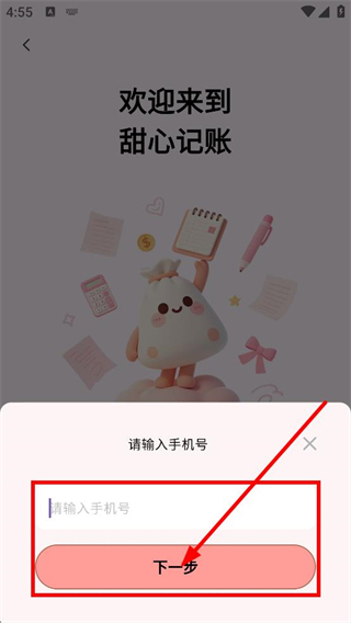 3、在手機(jī)號輸入頁面,輸入手機(jī)號后,點(diǎn)擊下一步,進(jìn)入頁面。
